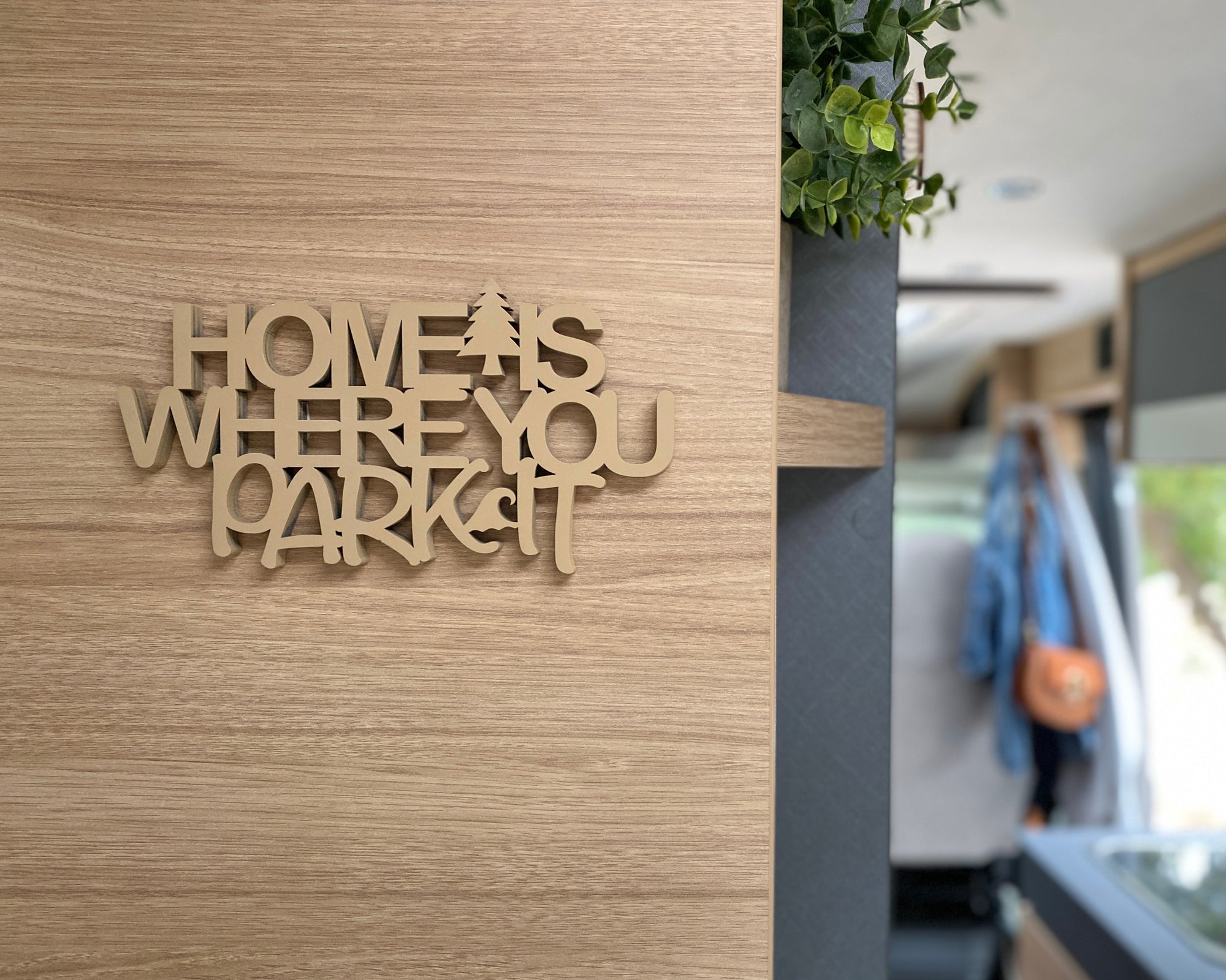 Unser Holz-Schriftzug bringt schnell, einfach & absolut unkompliziert einen gemütlichen Touch in Dein Wohnmobil, Deinen Wohwagen oder Van.